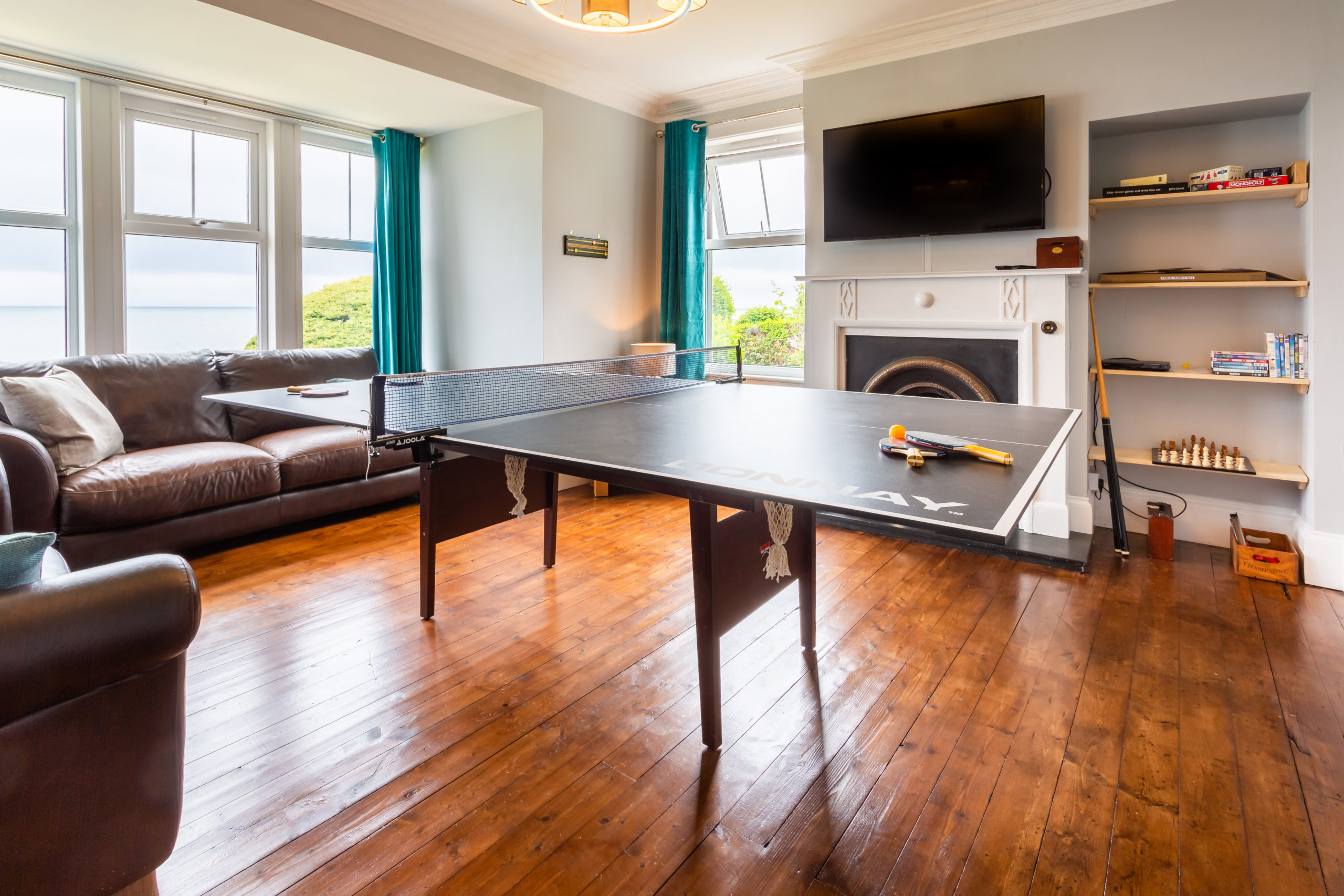 - Games room with table tennis and pool tables, board games, books and 50 inch smart TV.