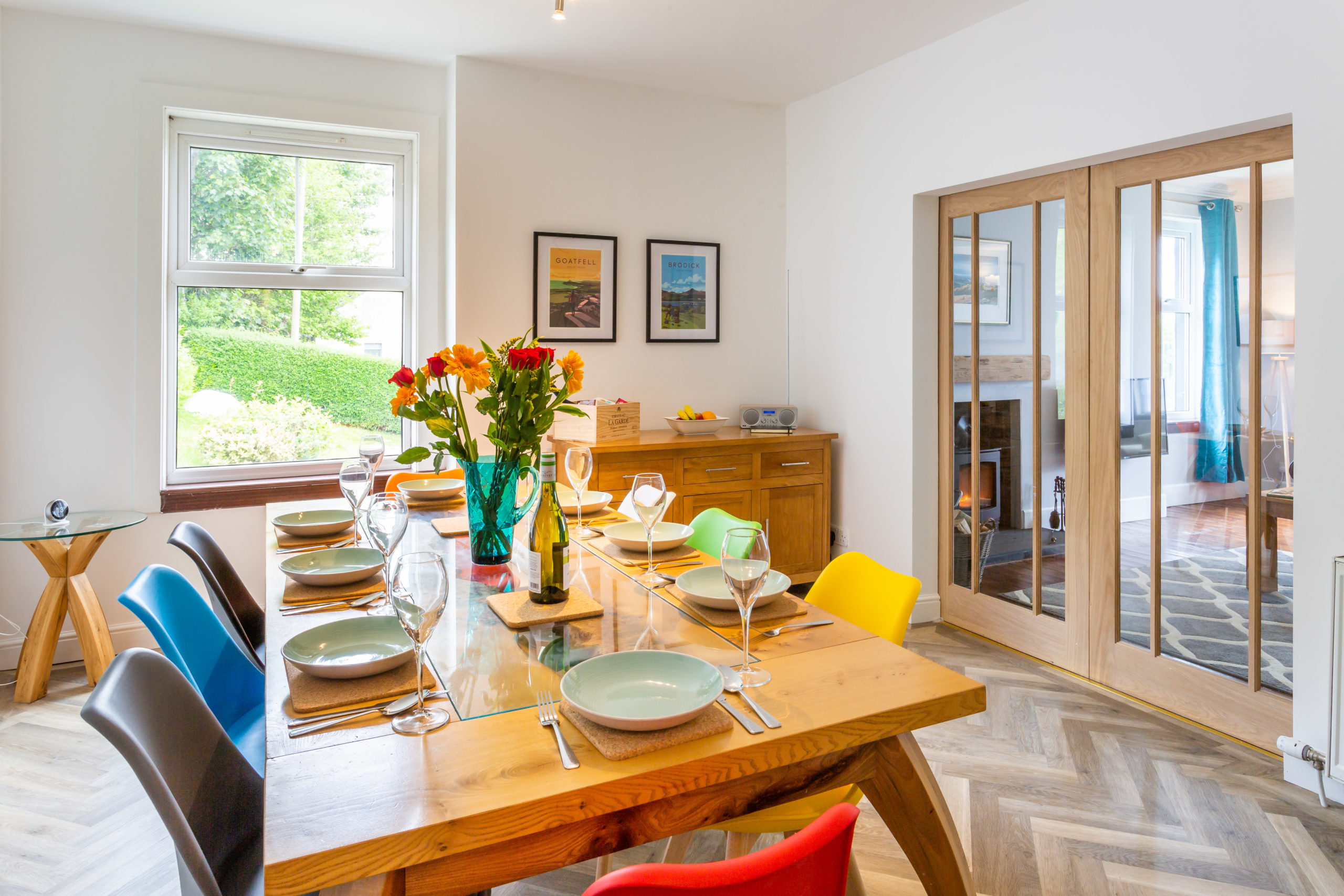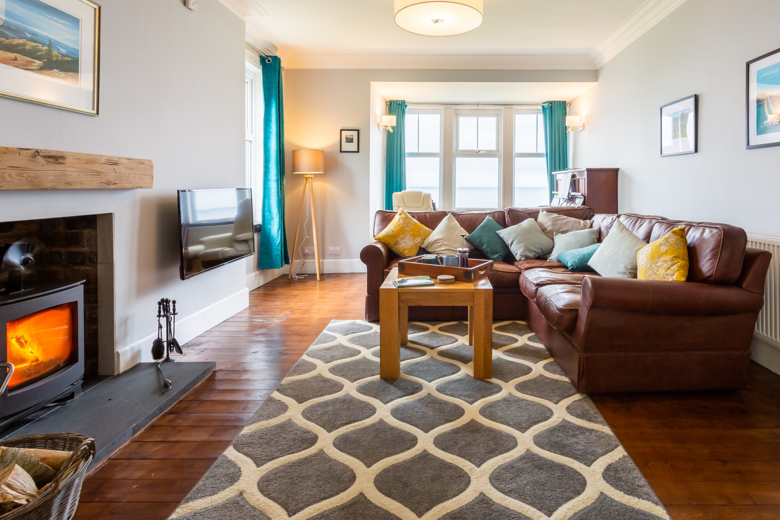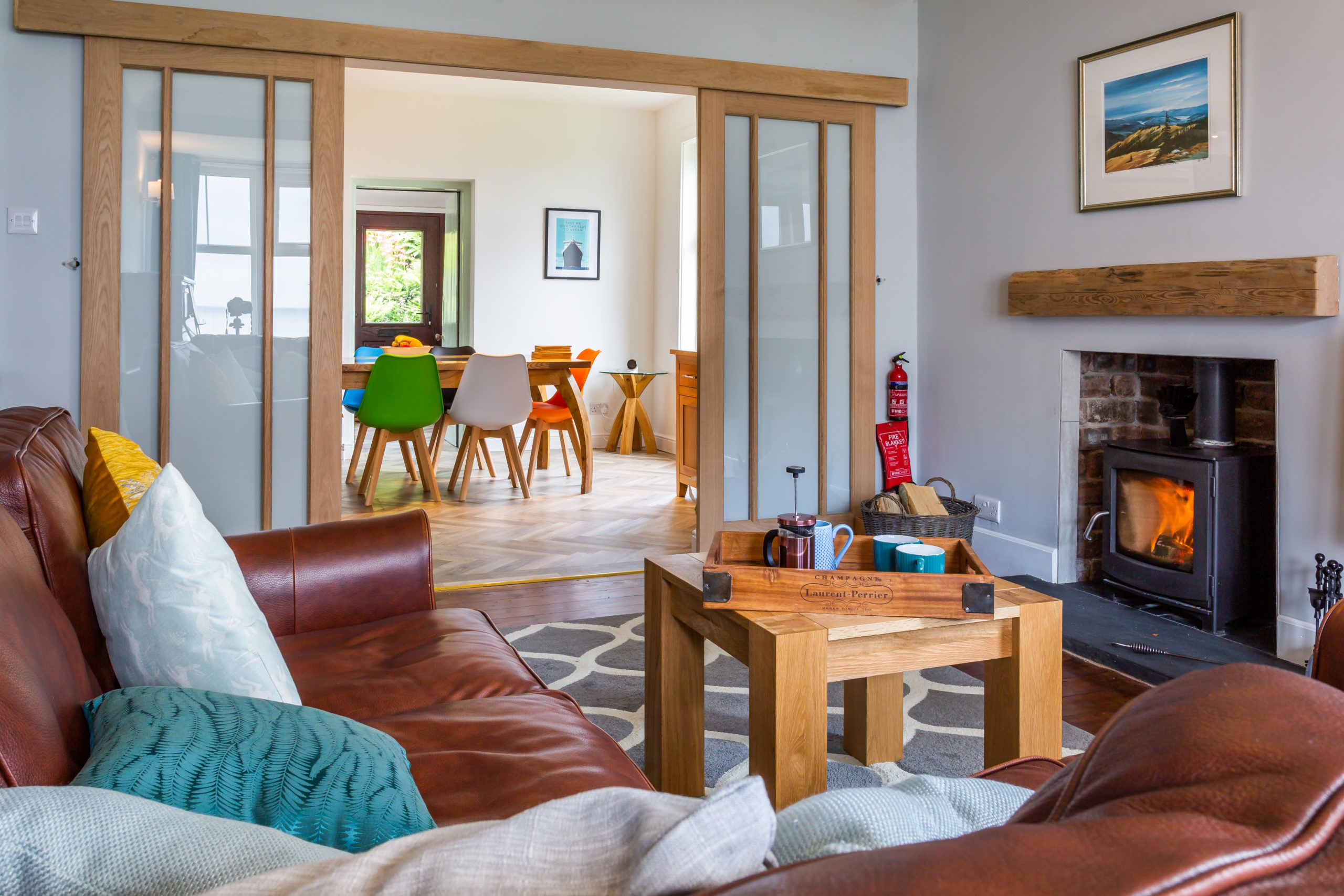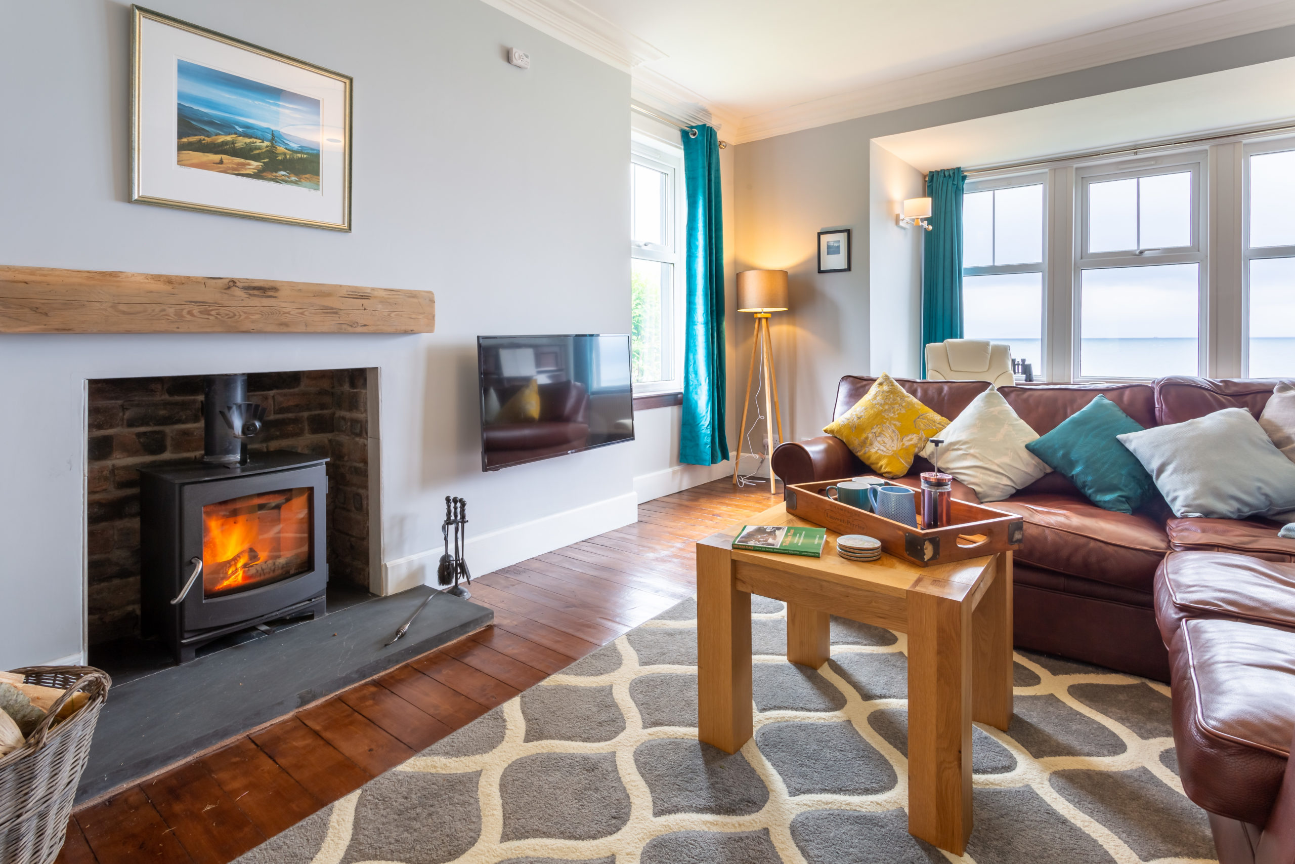 - Main lounge with log burner, piano (with variety of sheet music), collection of coffee table books and 50 inch smart TV.