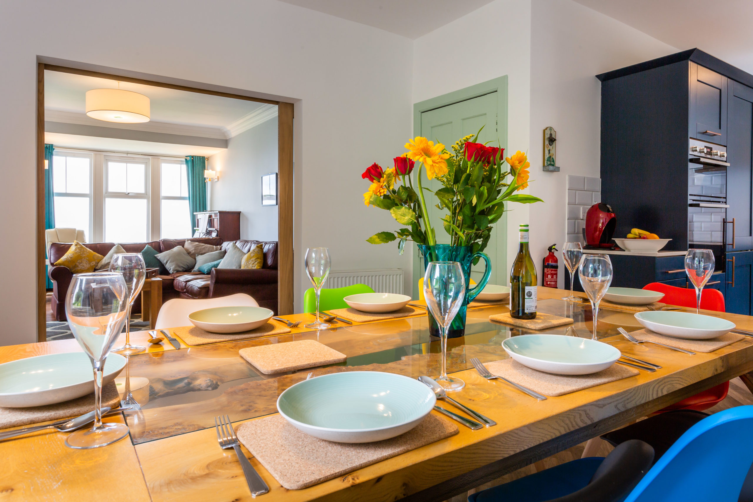 - Dining area adjacent to kitchen, with sliding doors to allow open plan access to lounge and seaviews.