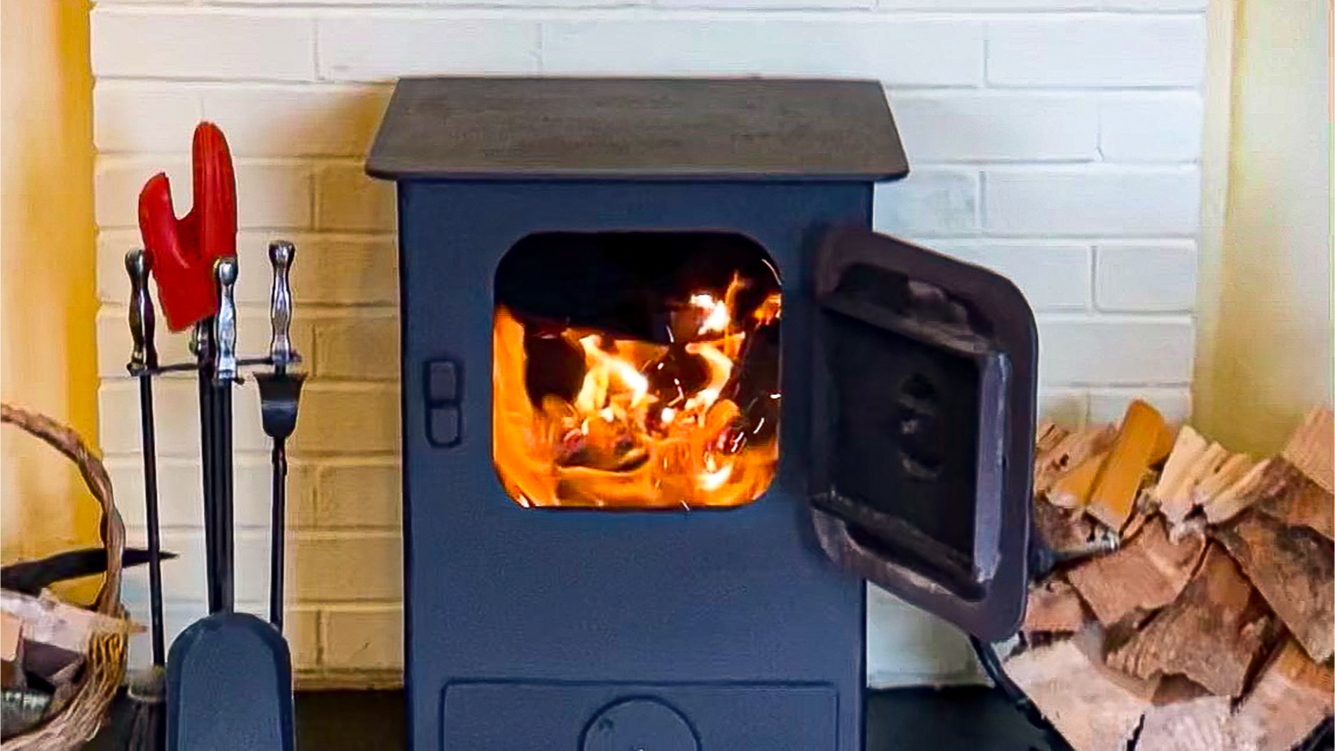 - Wood burning stove– initial logs included